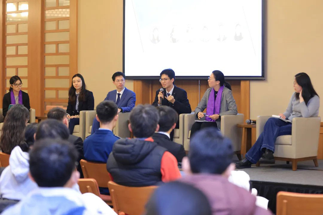 嘉宾们就领导力实践与思考、学业与职业发展管理以及如何更好地根植中国面向全球等进行了分享与探讨。